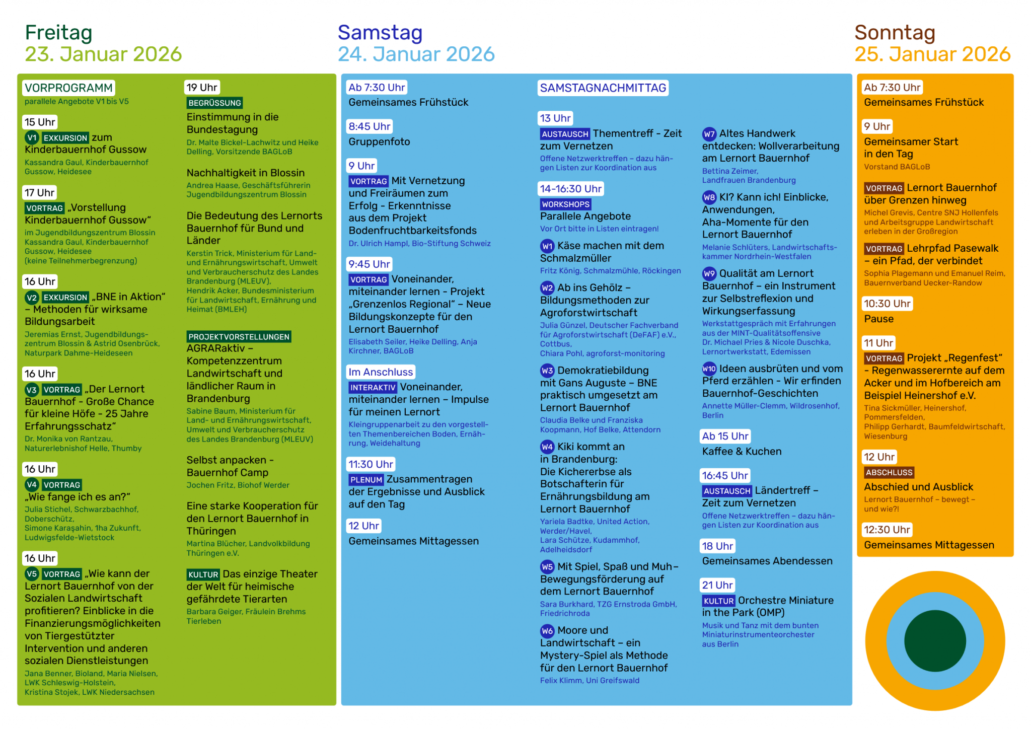 Die diesjährige Bundestagung steht unter dem Motto “Voneinander, miteinander lernen“ und bietet ein vielfältiges Programm aus Vorträgen, Workshops, Diskussionen und Exkursionen rund um das Lernen auf dem Bauernhof – mit spannenden Themen wie der Mystery-Methode, dem Einsatz von KI am Lernort Bauernhof, Demokratiebildung, Regenwasserernte und vielem mehr.