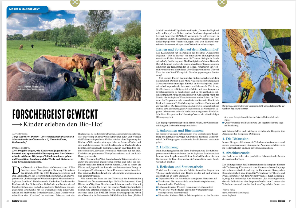 Lies weiterMärz 2025, Bioland Fachmagazin: Kinder lernen Landwirtschaft – Hofpädagogik trifft EU-Projekt